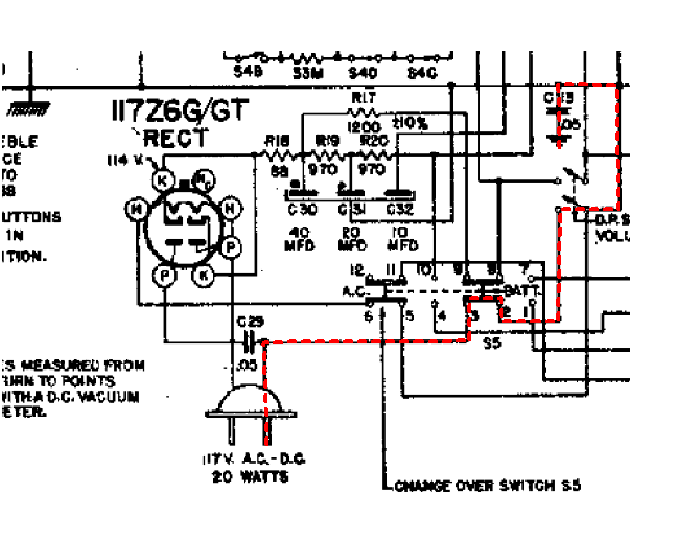 It should be noted there is a 0.05 uf capacitor (C13 chassis 8C40, Riders)