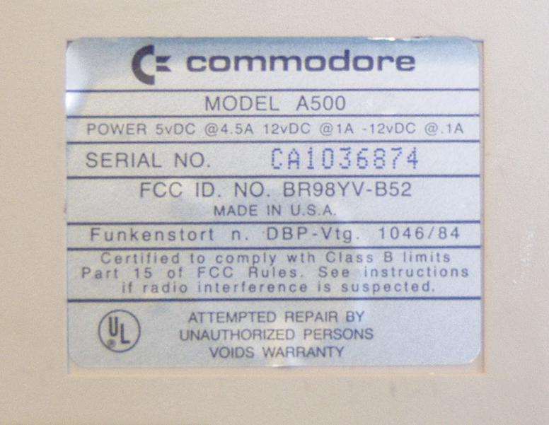 Right side view of Amiga 500. Here we see the internal 3.5" diskette drive.