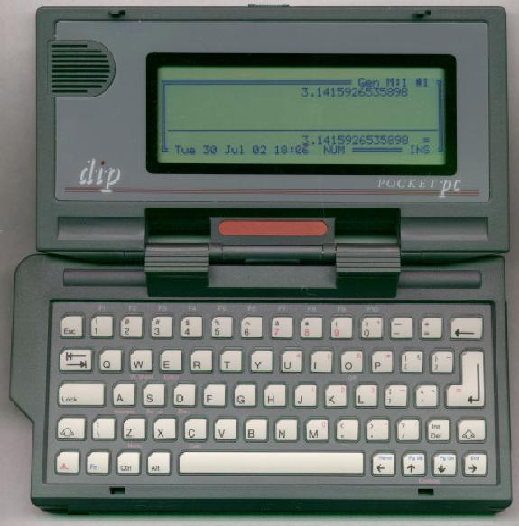 The Atari Portfolio started out in 1988 as the "Distributed Information Processing (DIP) POCKET PC" - It was purchased by Atari and made available as the Portfolio. This is one of the very first Palmtop MS-DOS computers