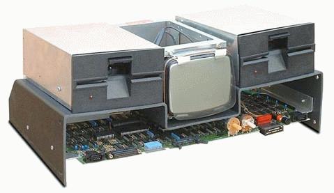 The Osborne-1 - Note the full sized 5.25" diskette drives, and the tiny video