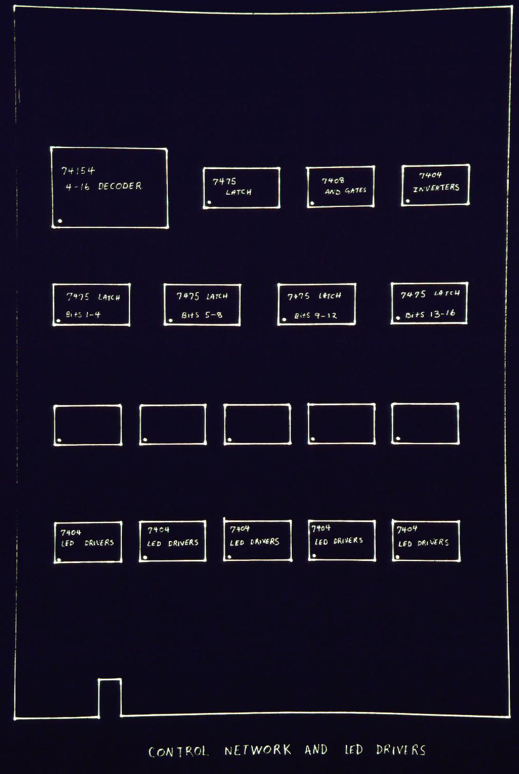 Unlike most other homebuilt computers, this machine does NOT use a microprocessor IC - the CPU is entirely home built from TTL logic, with the highest integration components being four 74281 TTL ALUs.