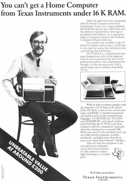 Shortly afterward, TI released the 99/4A, a machine with updated ROM's and (most importantly) a nice keyboard. It was a powerful and capable machine, however still based on an unfamilier CPU, it did not fare as well as was hoped, and TI eventually withdrew from the personal computer business.