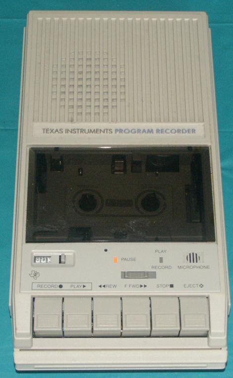 Software was available on cartridges and tapes. Tape software could be loaded with the TI Data Recorder (A standard cassette machine).