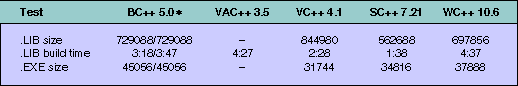 Table 5: TLX class library results. (*Borland results are reported as Borland/Intel back end.)