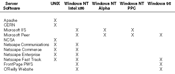 Table 1: Servers for use with FrontPage 97 extensions.