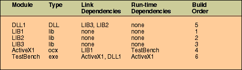 Table 1: Link-dependency table for TestBench.