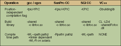 Table 1: Flags and compiler options used in shared library creation.