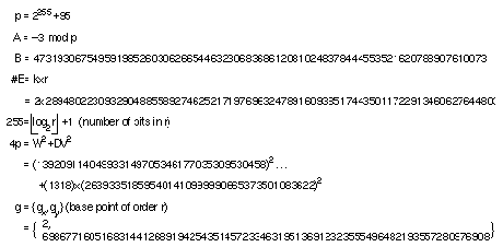 Figure 2: All of the elliptic-curve cryptosystem parameters, including the base point specification.