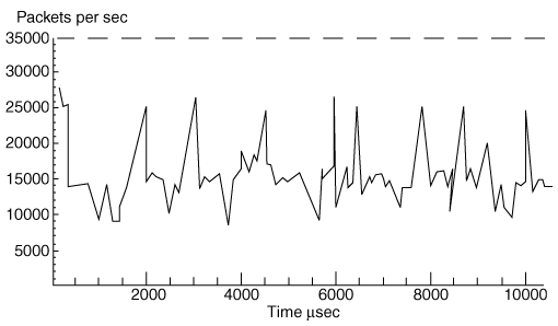 Figure 5: Knee capacity graph of Sweep3D running on PC cluster with 30 percent background load.