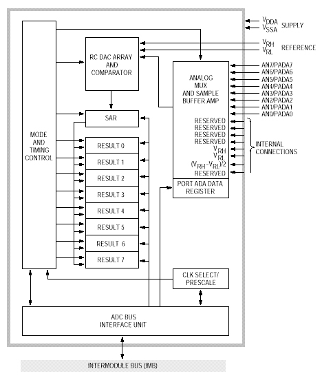 QSM, MCCI, TPU, GPT, SIM, SCIM, ADC, and various types of memory,
