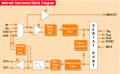 The TLC320AD50 16-bit analog interface circuit (AIC) is a versatile analog front end for business audio and modem applications. It provides high-resolution signal conversion and provides internal 64 x oversampling on the ADC and 256 x oversampling on the DAC.