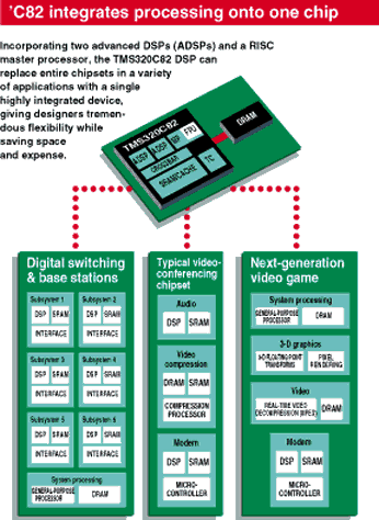 TI's TMS320C8x generation of high performance DSPs. The 'C82 integrates