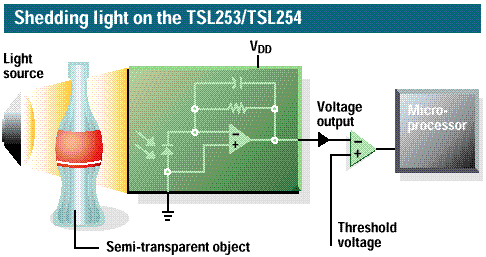 The TSL253 and TSL254 are the latest additions to the optoelectronics family of precision high-speed light-to-voltage converters. The TSL253 and TSL254, each integrates a 1-mm square photodiode and a transimpedance amplifier (feedback resistor of 16 M These devices provide high speed and high sensitivity at a low cost-to-performance ratio providing cost effective solutions for applications such as lighting controls, proximity sensors, and light metering. The TSL253 and TSL254 offer added benefits over discrete solutions to suit your light sensor needs. These added benefits include: