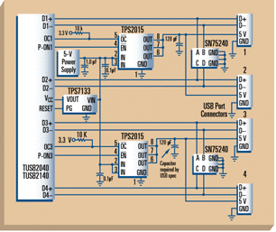 TUSB2040 SN75240 TPS7133 TPS2014 |
