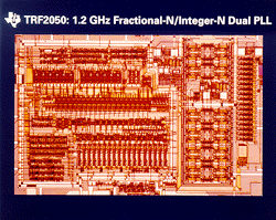 ![]() *TRF2020PW 1.2 GHz frequency synthesizer: Geared specifically for GSM applications. One main and two auxiliary synthesizers. Fast lock up times with high speed serial data bus and low power consumption. Package: 24-pin TSSOP. Price: $2.54. Status: sampling.